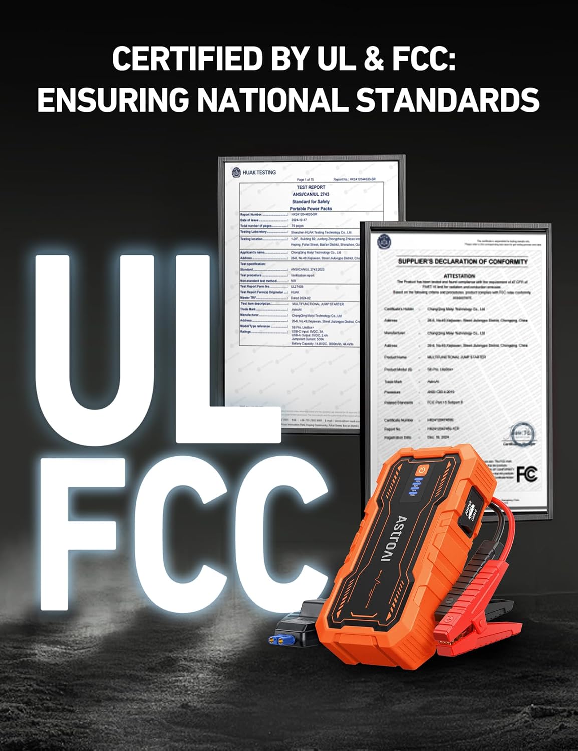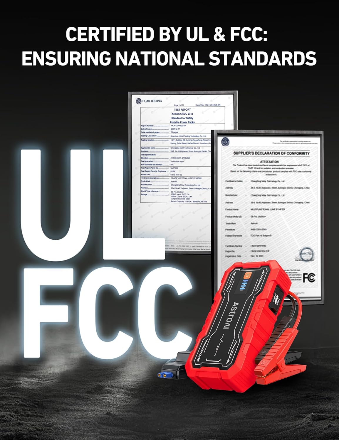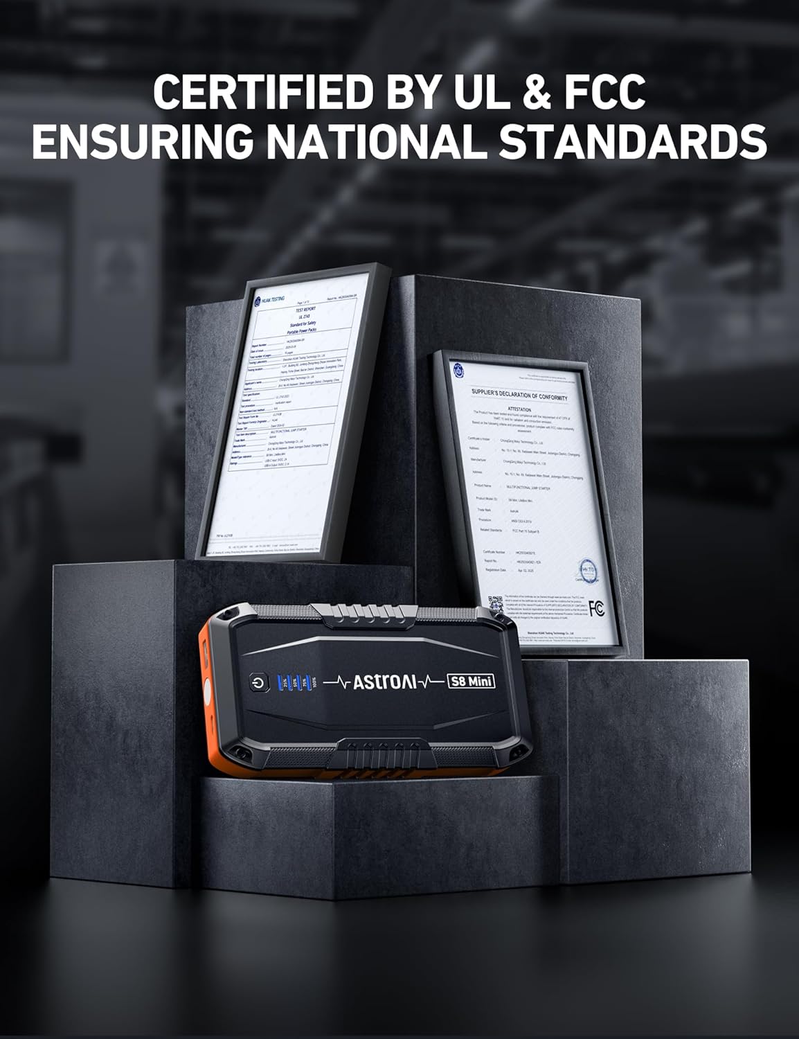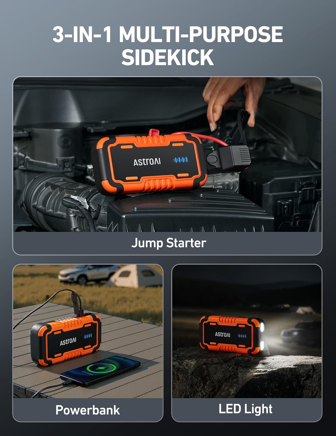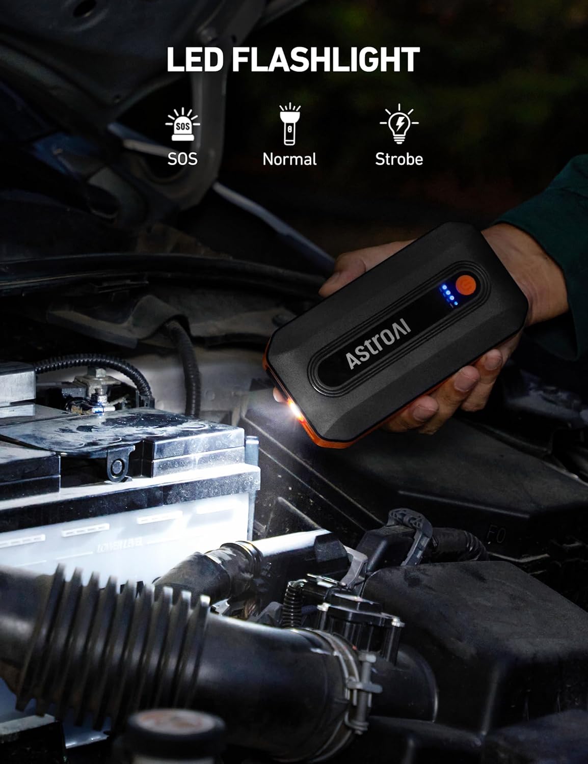 - 5-IN-1 MULTIFUNCTION - This device functions as a jump starter, portable power bank, and an LED flashlight with 3 modes (flashlight, strobe, SOS). The AstroAI Lithium Battery Jump Starter is your reliable, all-around trip companion here to gear you up for every adventure.