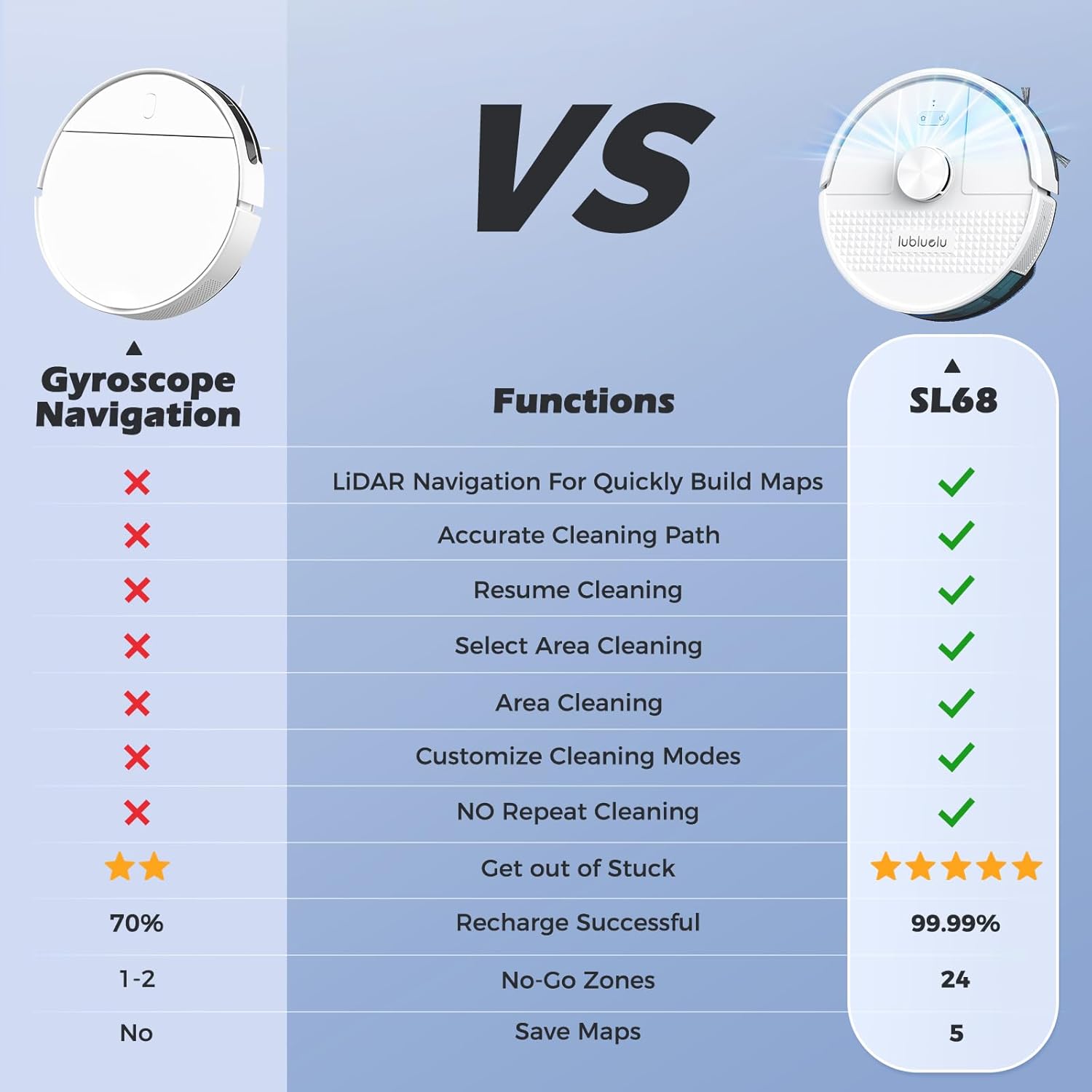 - 【Wir sind hier】Lubluelu hat sich schon immer der Philosophie "Der Kunde steht an erster Stelle" verschrieben. Wir verfügen über ein professionelles technisches FAE-Supportteam, um sicherzustellen, dass Sie Hilfe bekommen, wenn Sie sie brauchen, und um Ihnen ein zufriedenstellendes Erlebnis und auch eine 2-jährige Unterstützung zu bieten. Der Lubluelu SL68 Staubsaugerroboter ist ein großartiges Geschenk für Ihre Liebsten, insbesondere für ältere Menschen und Menschen mit eingeschränkter Mobilität.