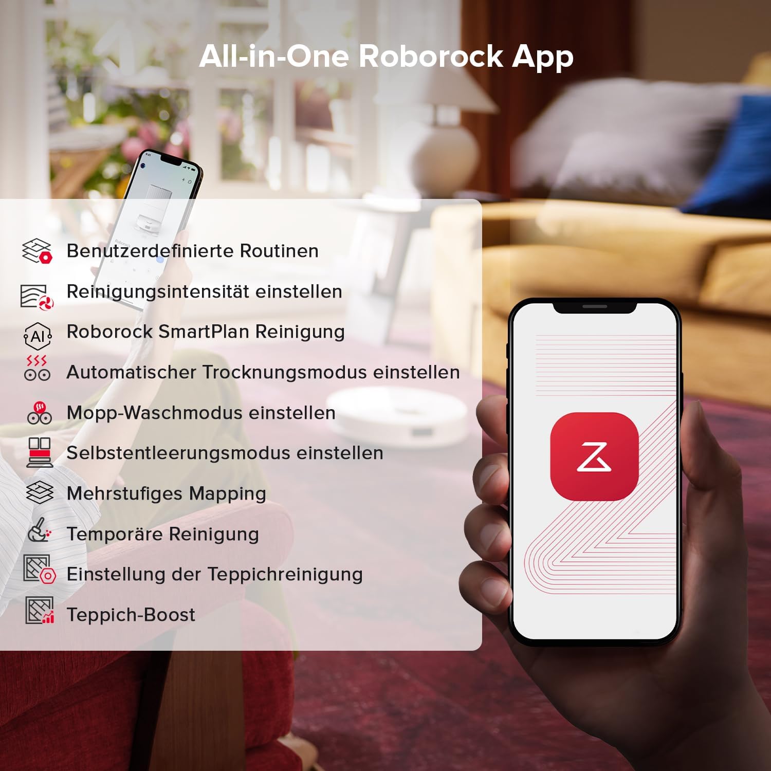 - Ihr ultimativer Reinigungshelfer: Die Roborock-App integriert verschiedene Funktionen wie benutzerdefinierte Routen, Reinigungszeitpläne, Kindersicherungen, Kartenverwaltung und Maschinenstatusanzeige. Der Saugroboter funktioniert außerdem mit Smartwatches, Widgets und Sprachsteuerungsgeräten von Drittanbietern für schnellen Zugriff und noch bequemere Reinigung.